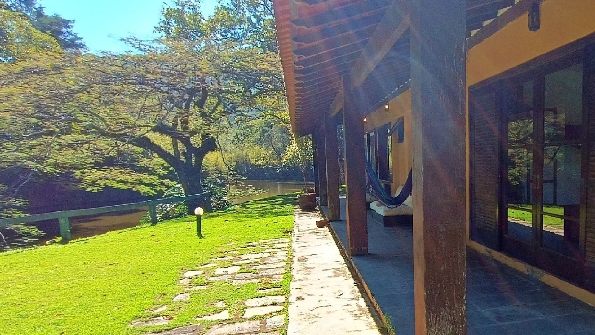 A casa dá direito ao uso de toda área de lazer do condomínio com piscina, sauna, lago particular par pesca e caiaque , vôlei e muitos jardins