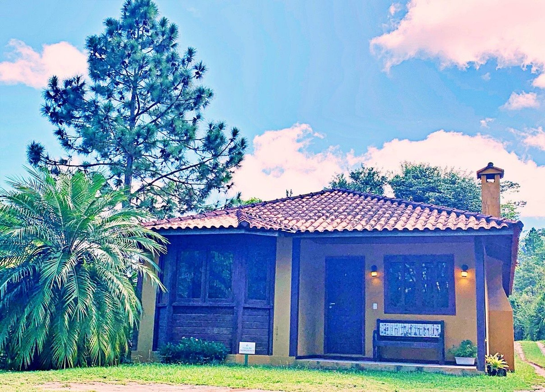 Condomínio com apenas 4 chalés e 5 casas. Espaço com 30 mil m2 de área verde. Lago particular e muitos jardins, com espreguiçadeiras e área para picnic. Churrasqueira portátil com espetos e grelha.