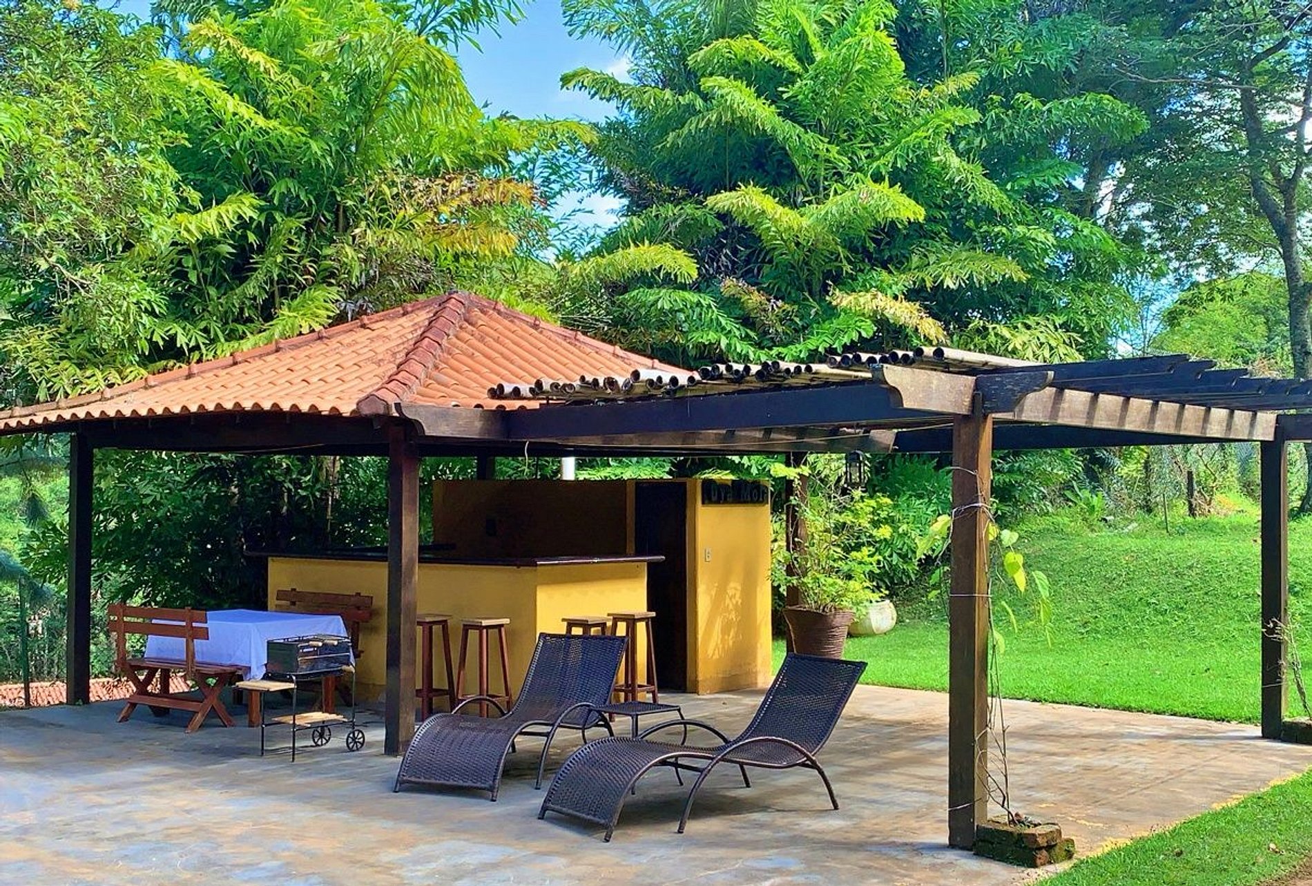 Condomínio com apenas 4 chalés e 5 casas. Espaço com 30 mil m2 de área verde. Lago particular e muitos jardins, com espreguiçadeiras e área para picnic. Churrasqueira portátil com espetos e grelha.