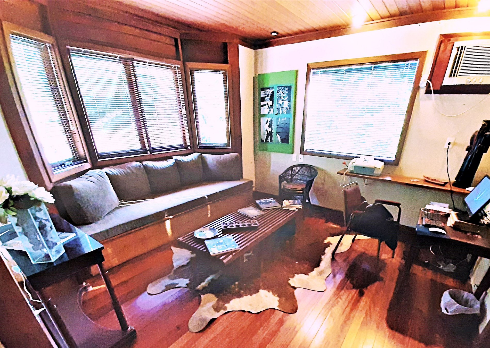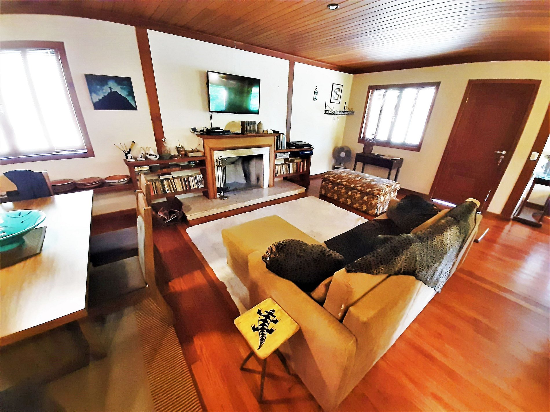 Ampla sala de estar com lareira e lavabo. Tv com canais a cabo e streaming, WiFi de alta velocidade.