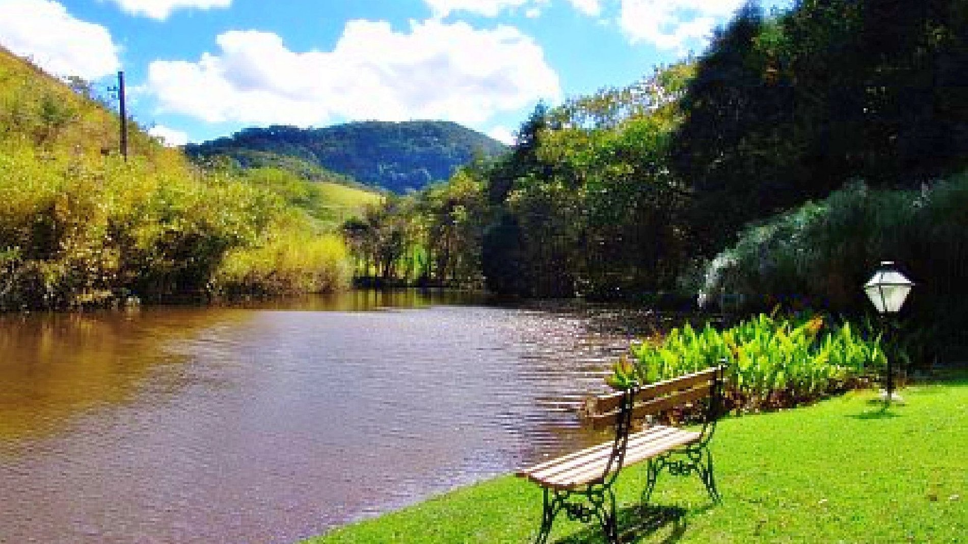 Cama box king. Roupa de cama banho, banheiro privativo com sabonete, papel higiênico. TV 32 polegadas com canais a cabo streaming Wi-fi de alta velocidade. Escrivaninha para computador, com cadeira Microondas. Louça, talheres, copos e taças de vinho Frigobar. Ventilador de teto e aquecedor elétrico. Cafeteira com café, açúcar e adoçante Varanda com rede e mesinha para refeições. Área de lazer com piscina, sauna, vôlei, jardins e lago particular para pesca e caiaque