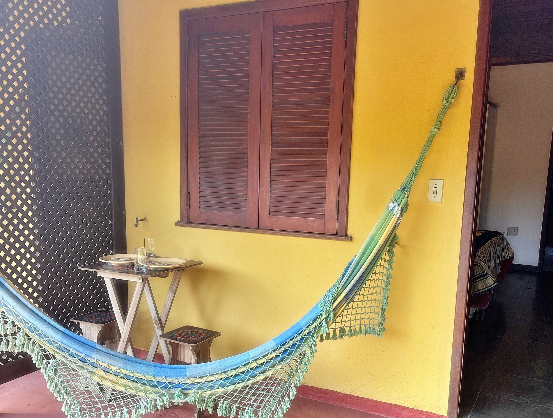 Ideal para casais. Varandão com rede e mesinha para refeições. Cama king, TV com canais a cabo e streaming, frigobar, microondas, louça e talheres, taça de vinho, cafeteira elétrica, café, escrivaninha, roupa de cama e banho. Banheiro privativo. Acesso à área de lazer com piscina, sauna seca e a vapor, lago particular para pesca e caiaque. Não oferecemos café da manhã.