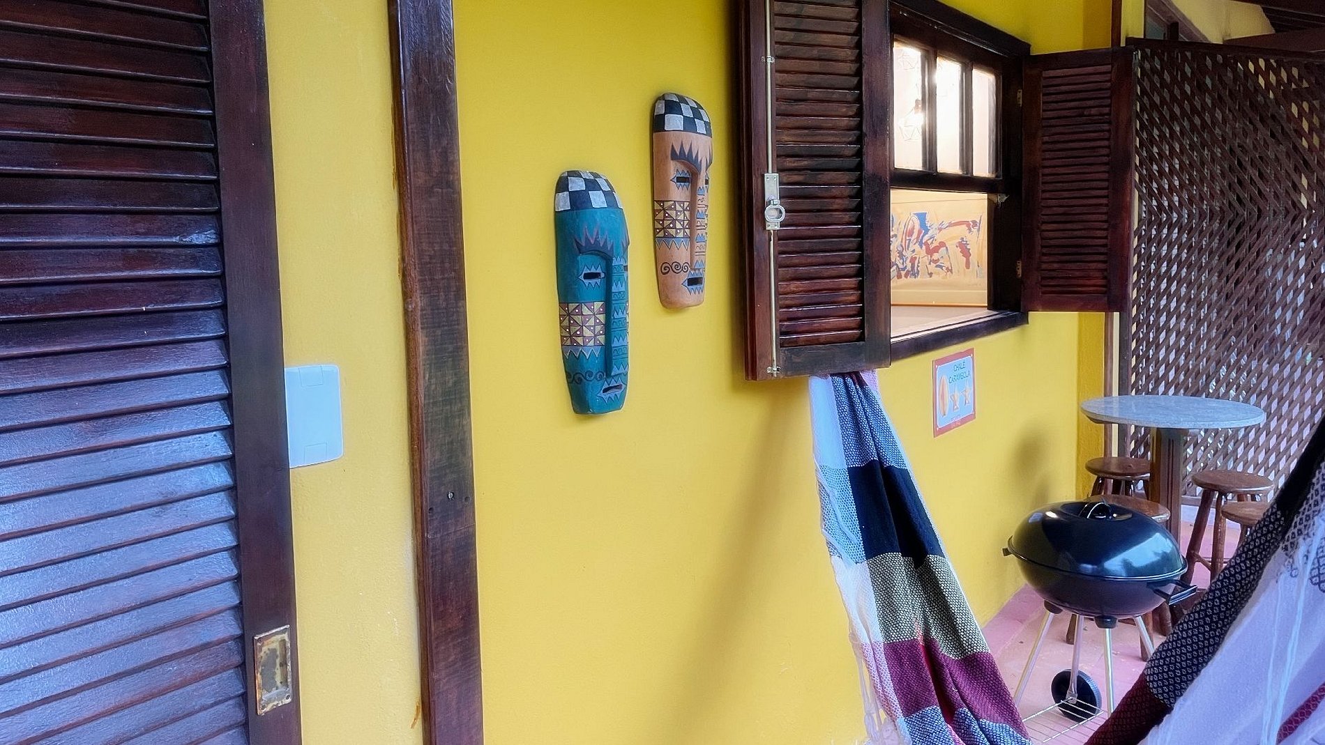 Casa aconchegante com quintal. Varanda com churrasqueira, rede e mesinha.